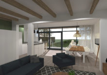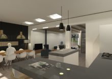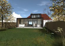HemelumAan een bestaande woning is een ruimte toegevoegd in de vorm van een serre-kamer met uitzicht op de tuin en het landschap. De keuken en de eethoek grenzen aan de tuin en het terras. Op de verdieping is een dakkapel ontworpen welke zorgt voor licht in de slaapkamer en badkamer.