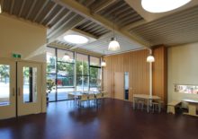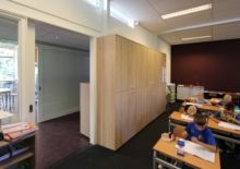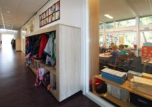De bestaande jaren-70 school is deels verbouwd, gesloopt en uitgebreid met een grote centrale hal. Die heeft een verblijfsfunctie en zorgt ook voor een verbetering van de routingsmogelijkheden. Tevens is dit het leerplein en het kan gebruikt worden voor gezamenlijke activiteiten.