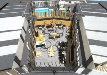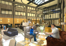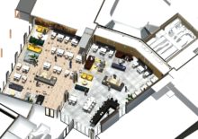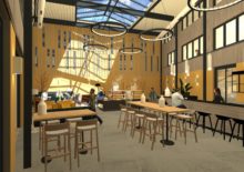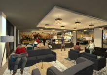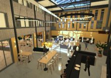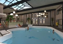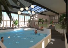 KoudumVoor Hotel de Galamadammen nabij Koudum zijn een reeks van plannen gemaakt die gefaseerd uitgevoerd gaan worden. Het dak van de wintertuin en het zwembad is als eerste aangepakt. Het dak is voorzien van een lichtkap, wat zorgt voor meeer en een mooie lichtinval. Er is een nieuwe wand geplaatst tussen het zwembad en de wintertuin met diverse openingen. Verder zullen in de volgende fase de wanden worden aangekleed met warme houten latten, zodat deze ruimte een prettige verblijfsruimte wordt om bijvoorbeeld lekker te loungen, te ontbijten of een feest te geven. De losse zalen zullen door middel van een een glazen vouwwand verbonden worden met de wintertuin en krijgen een relatie met de haven. Zie ook www.galamadammen.nl
